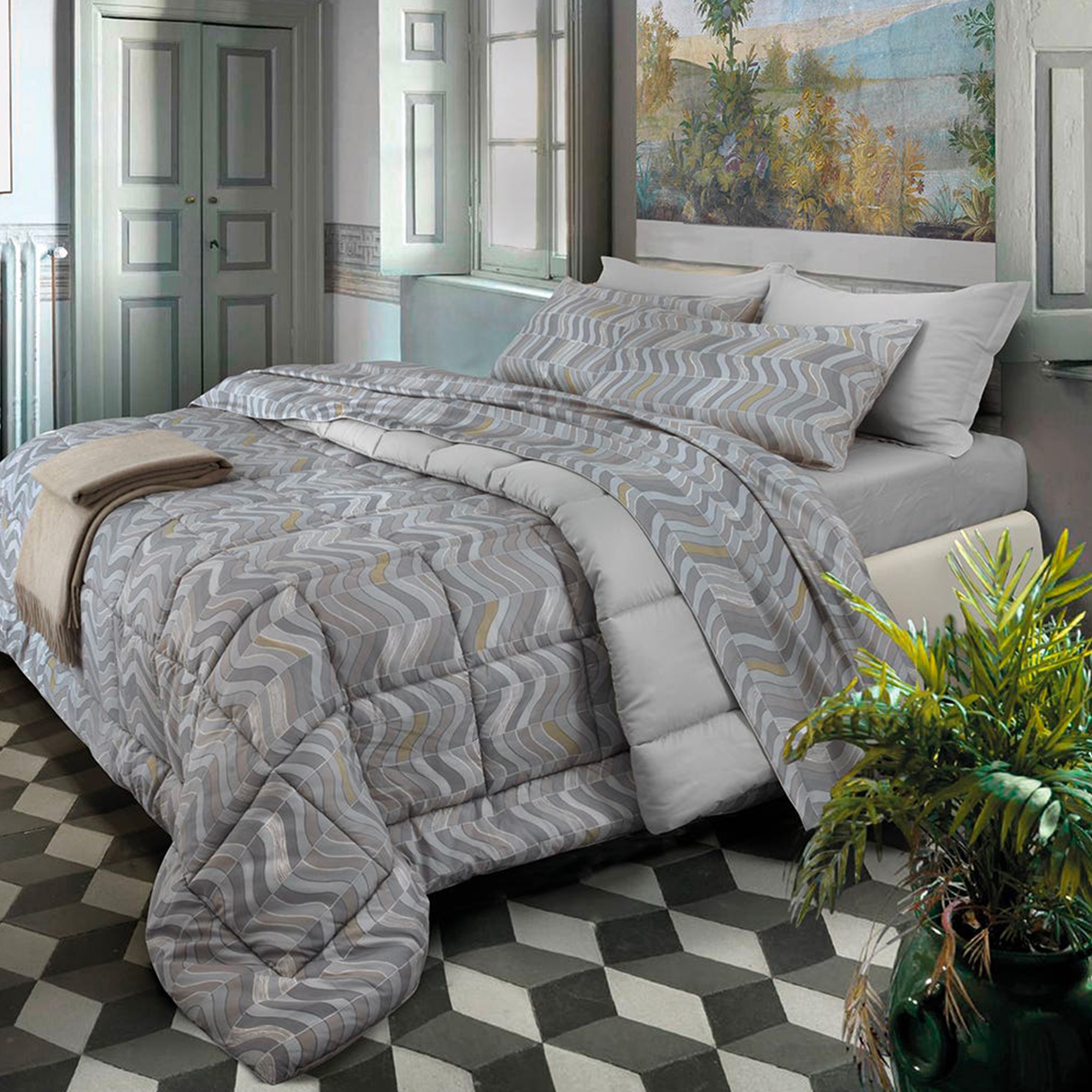 Onde sinuose con Lavinia, il nuovo completo copripiumino della Collezione Impero di Somma 1867.